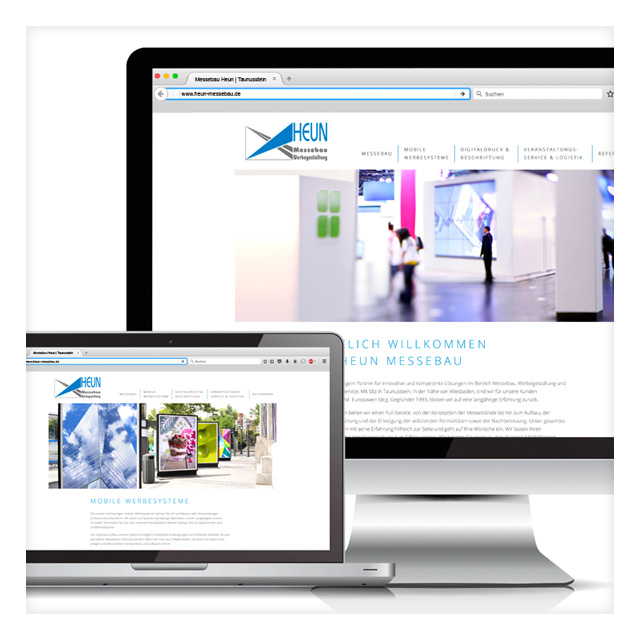 Webauftritt für Heun Messebau/Werbegestaltung, in Kooperation mit f-cube Computerservice